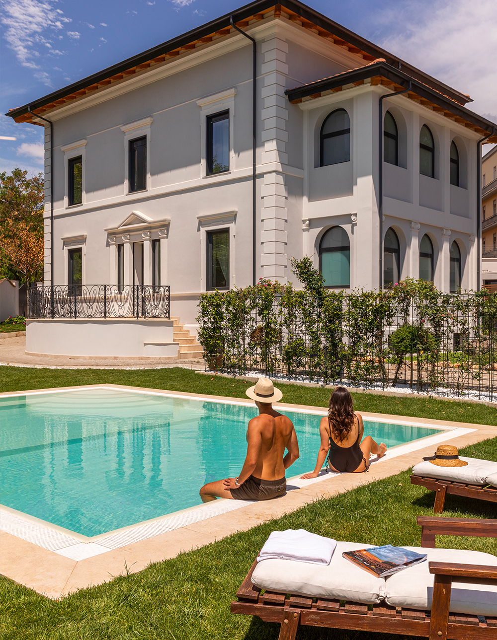 Les grands espaces extérieurs, notre splendide piscine et l’atmosphère typiquement romaine avec un mobilier moderne vous feront oublier le chaos de la ville, sans renoncer au confort et à la beauté de Rome.