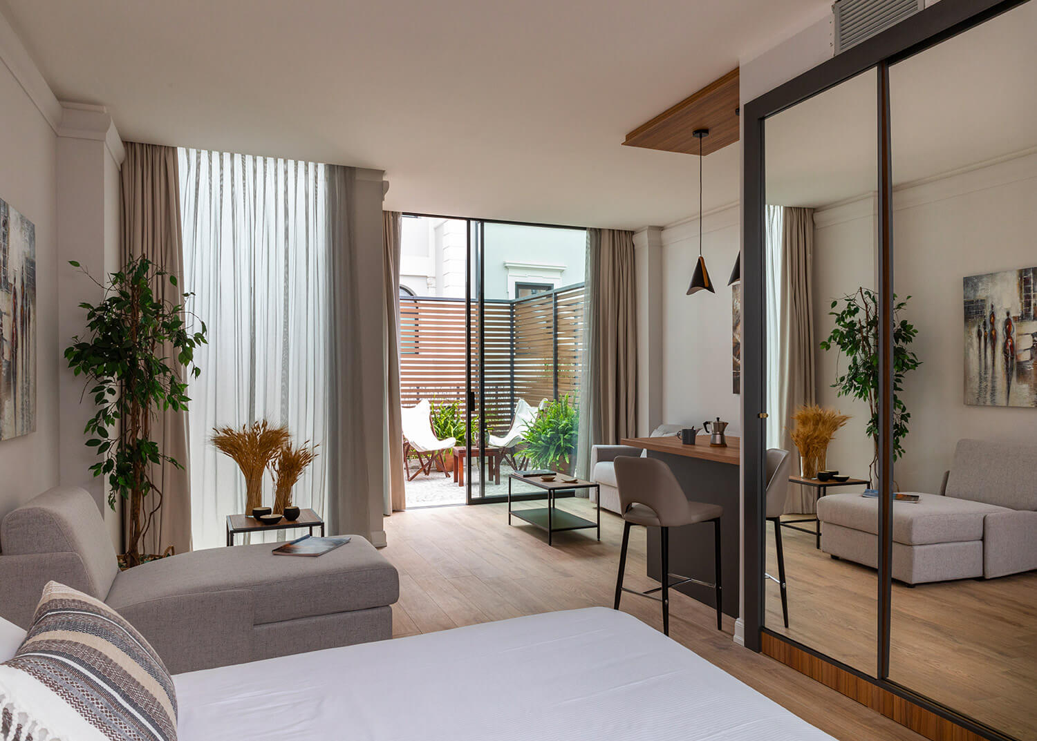 Chambres et appartements exclusifs avec entrées séparées pour un séjour relaxant.