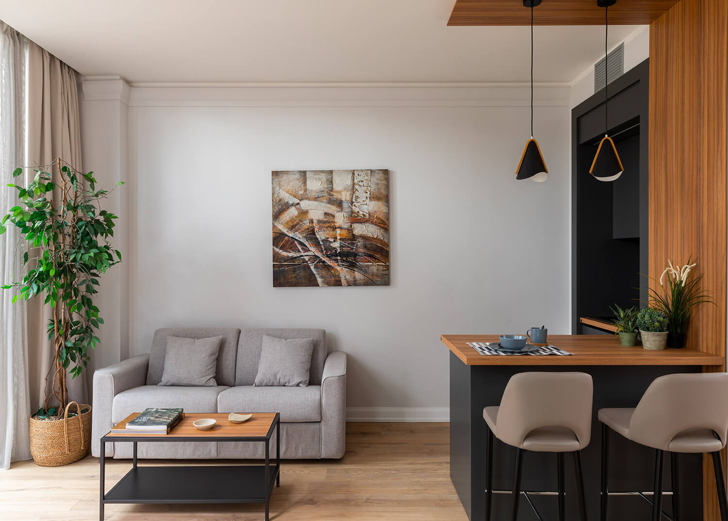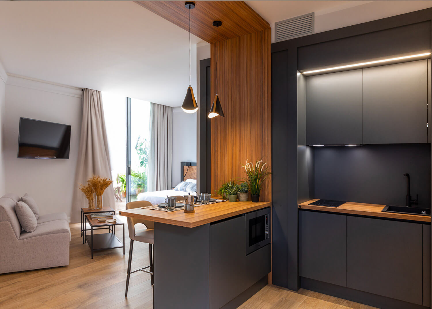 An oasis where you forget you are in the city. Surrounded by greenery, with a beautiful swimming pool. Elegant and minimal furniture. I would definitely stay there again.